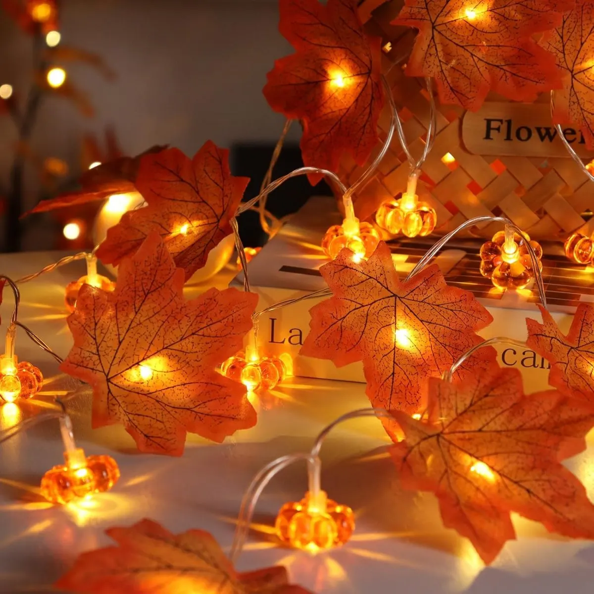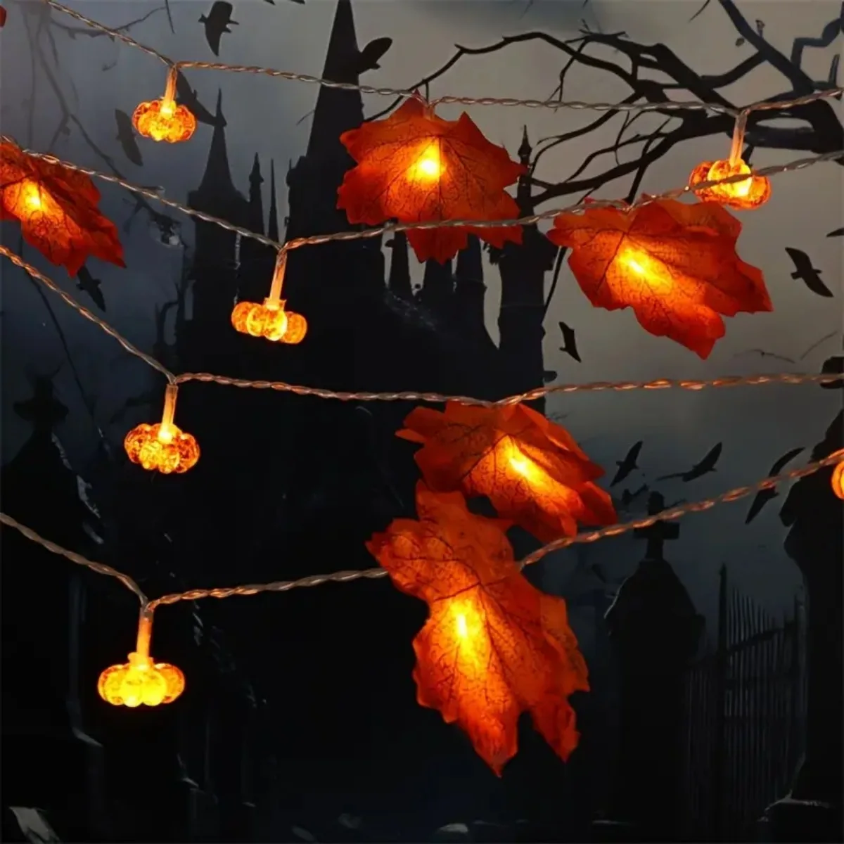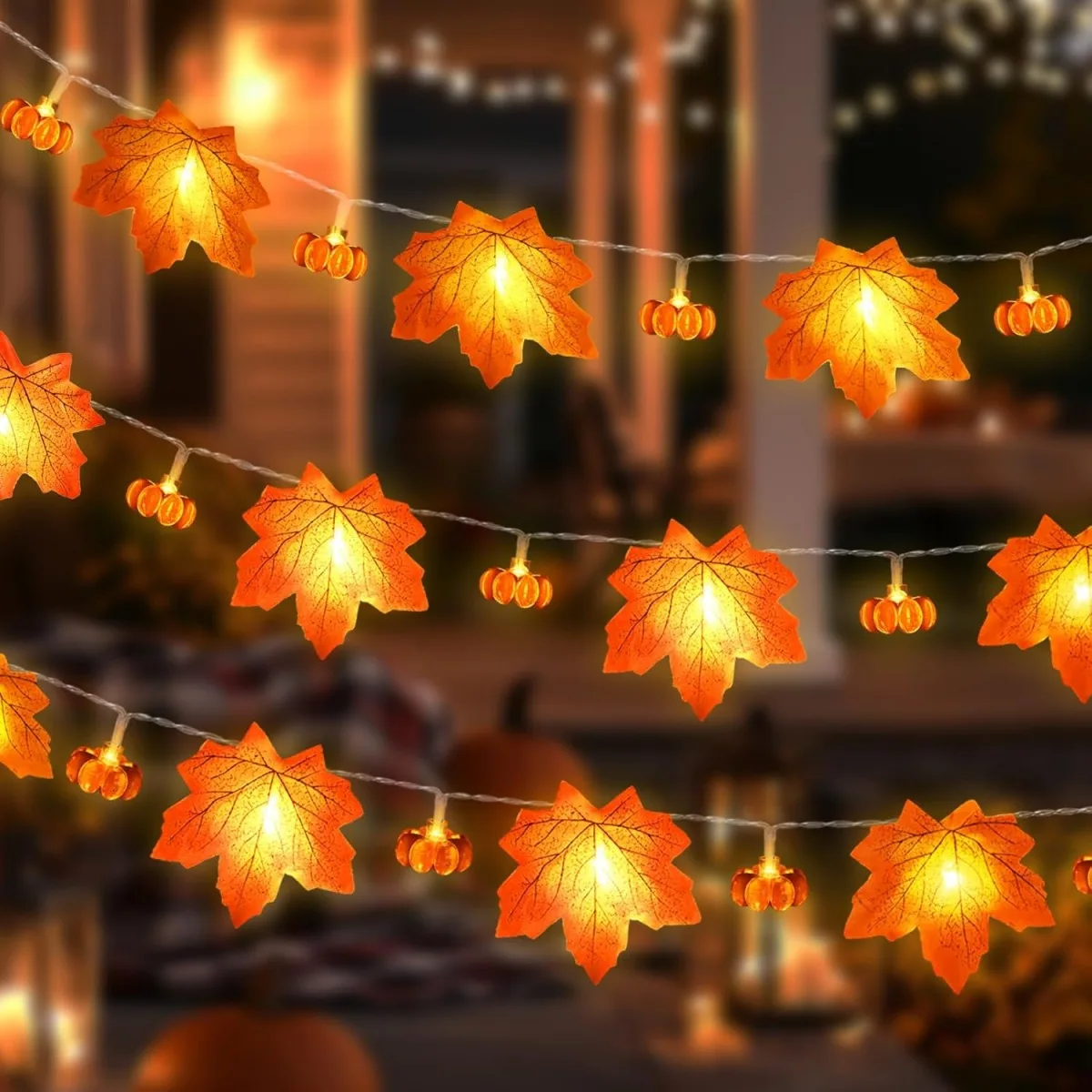 Add a warm, festive glow to your space with fall leaf garland string lights, perfect for cozy Halloween nights and cheerful Thanksgiving gatherings 🍂