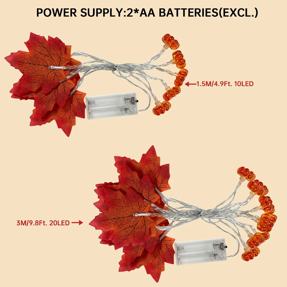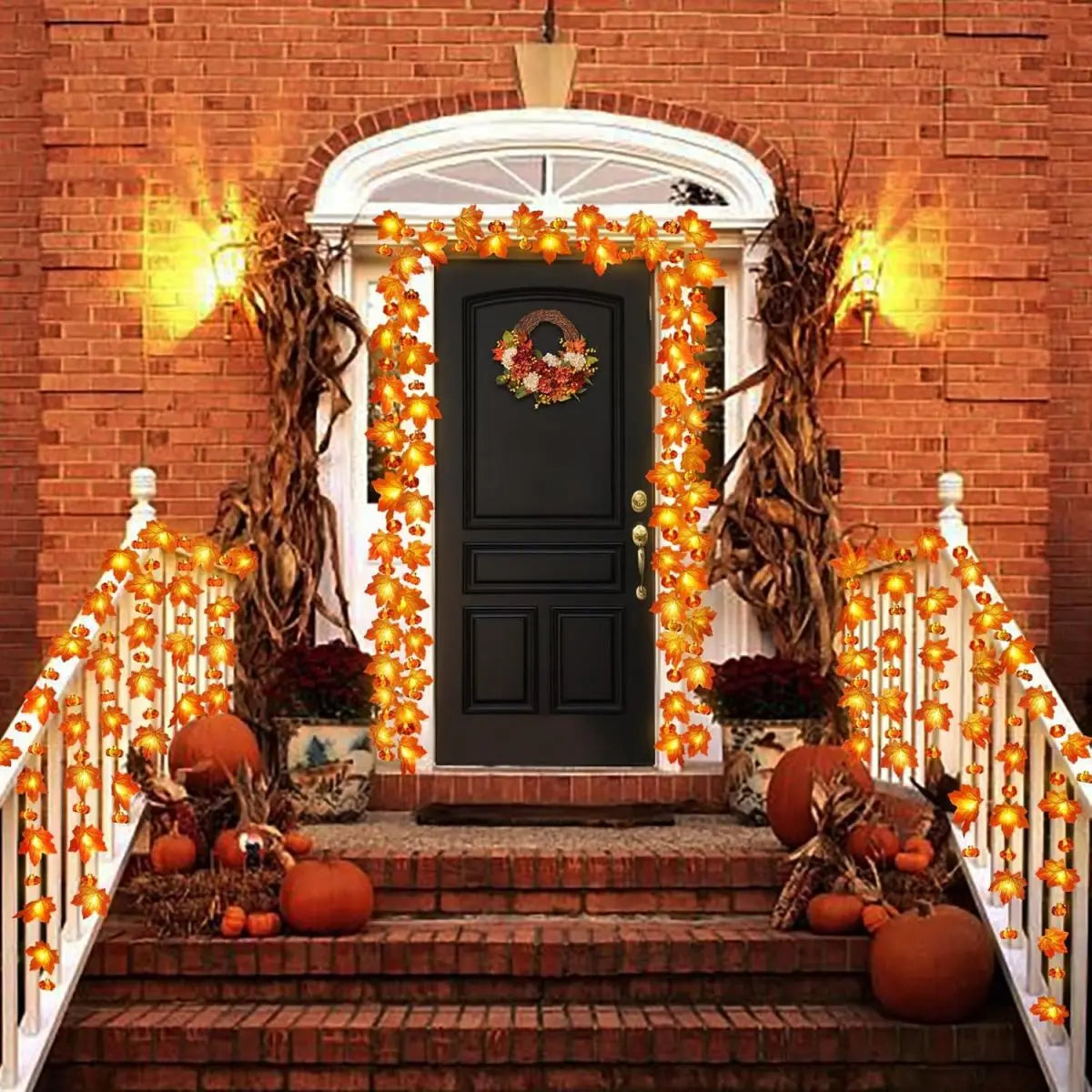 Fall Leaf Garland with Lights Halloween String Lights, Thanksgiving Decoration
